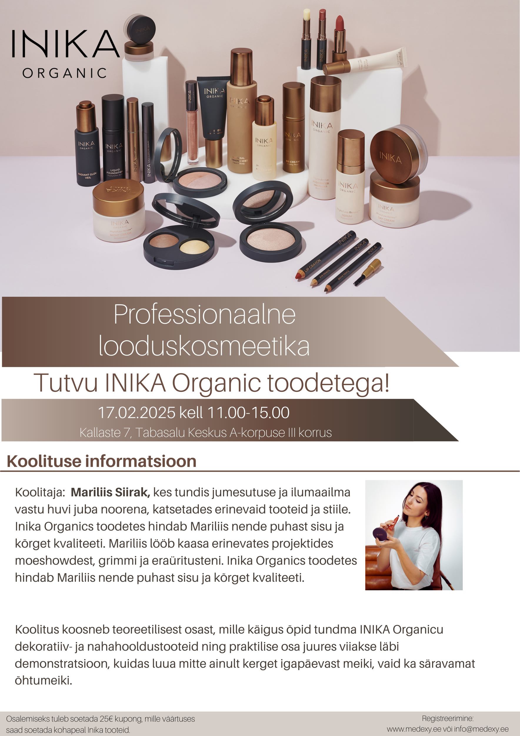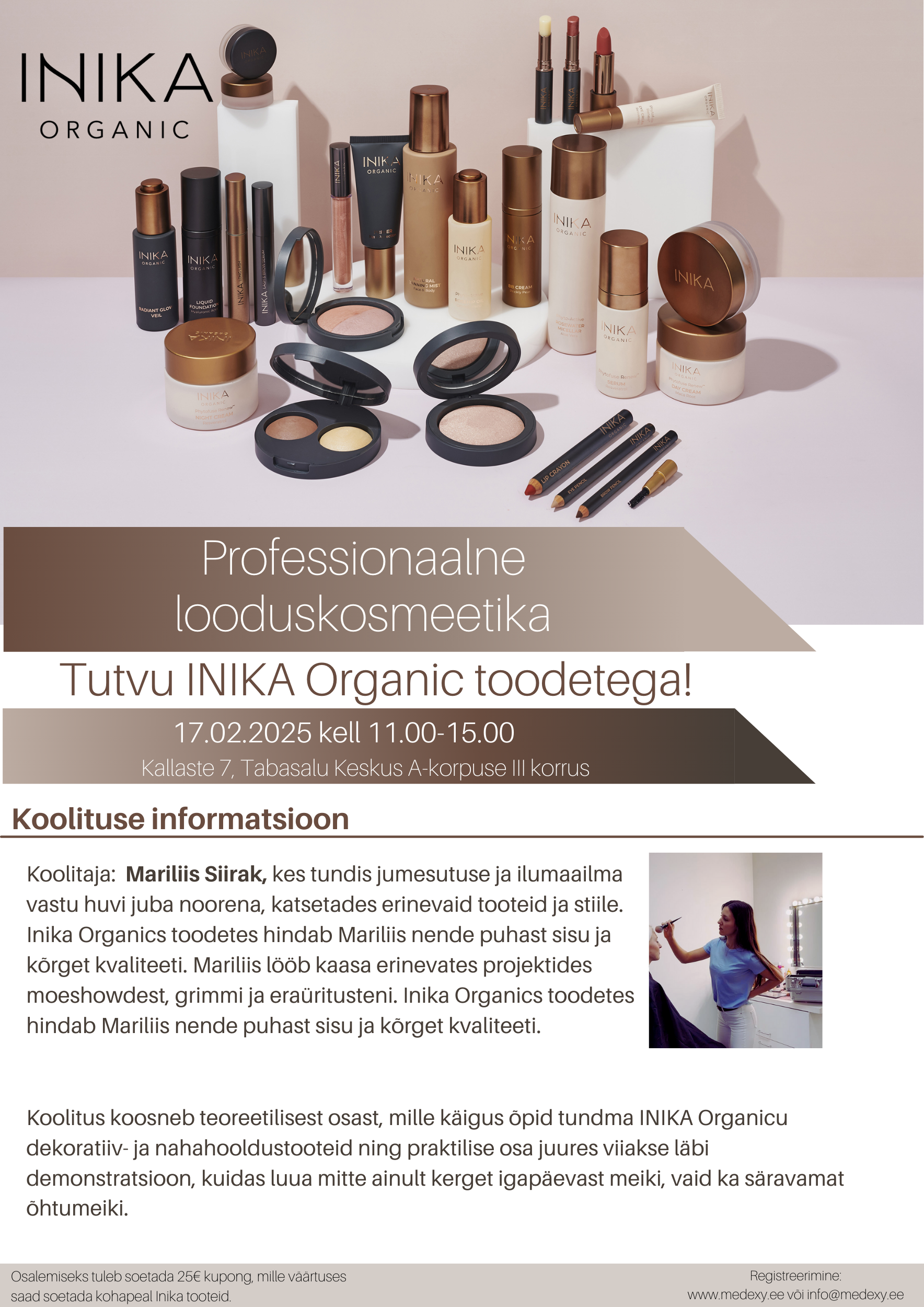 Koolitusel osalemiseks tuleb soetada 25€ kupong, mille eest saad koolitusepäeval kohapealt soetada INIKA tooteid.