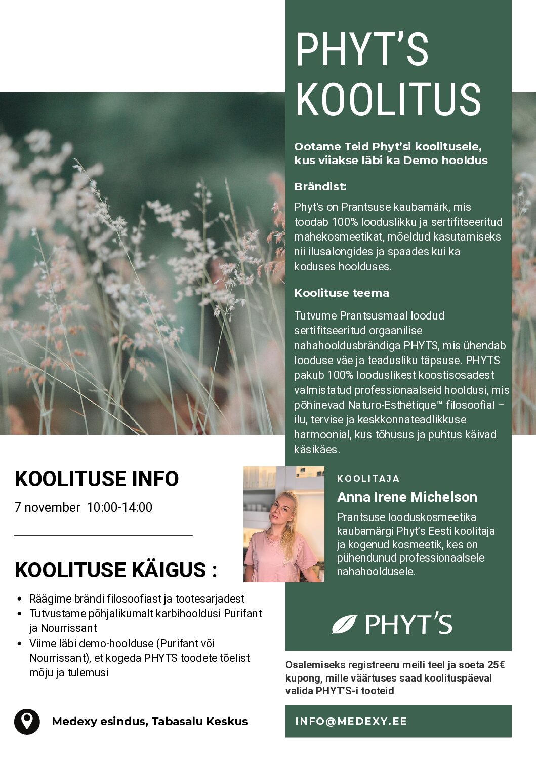🎁 Osalemistasu: 25 €, mille väärtuses saad koolituspäeval valida PHYTS’i tooteid